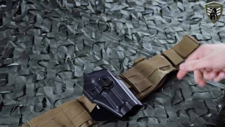 If you use a holster without a MOLLE/PALS system or the MOLLE adapters don’t seem to fit. You can easily make a piece of regular belt on top of the MOLLE. You can watch how to do it on 6:06/7:36 in the video.