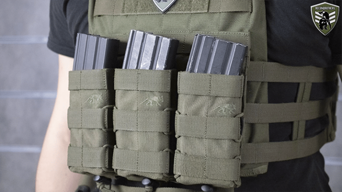 As for your front panel that’s quite a different story, because you sometimes just don’t want to risk losing any magazines by doing certain movements. So, most use Velcro or elastic retained pouches to have a secure retainment, but that gives a lack of speed for doing a reload.