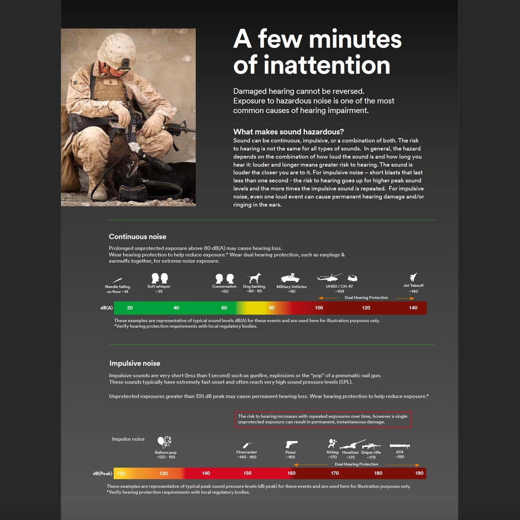 Provides situational awareness, protects from hazardous noise & allow in-ear radio communications.